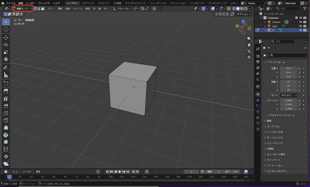 この記事では、まずオブジェクトモードでの基本操作を覚えます。