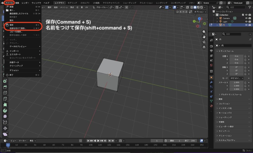 保存(Command + S)、名前をつけて保存(shift+command + S)